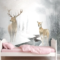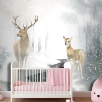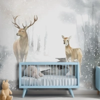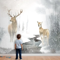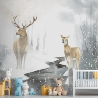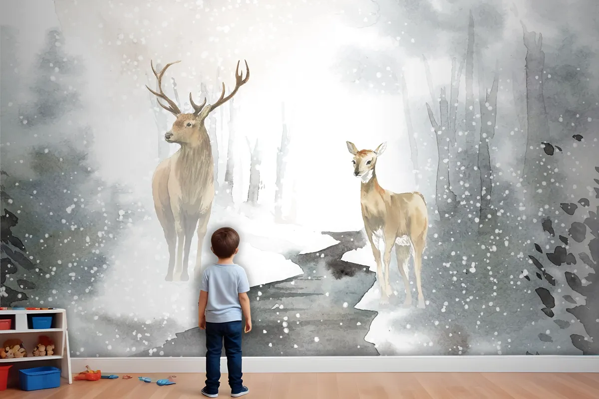 Elle Çizilmiş Geyik Çifti Suluboya Tarzı Çocuk Odası Duvar Kağıdı
