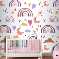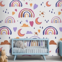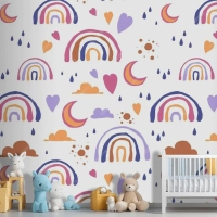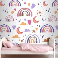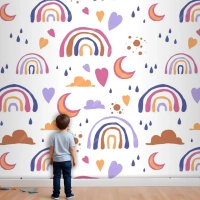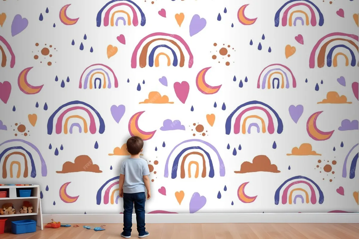 Elle Çizilmiş Gökkuşağı Desen Tasarımı Çocuk Odası Duvar Kağıdı