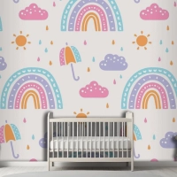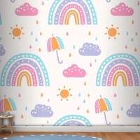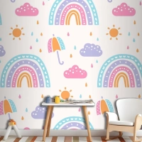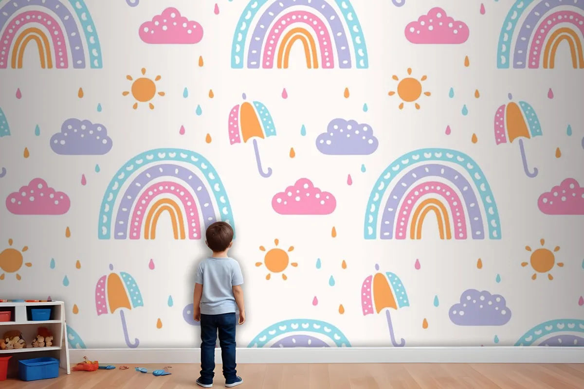 Elle Çizilmiş Gökkuşağı Desen Tasarımı Çocuklar Çocuk Odası Duvar Kağıdı