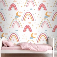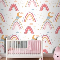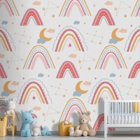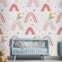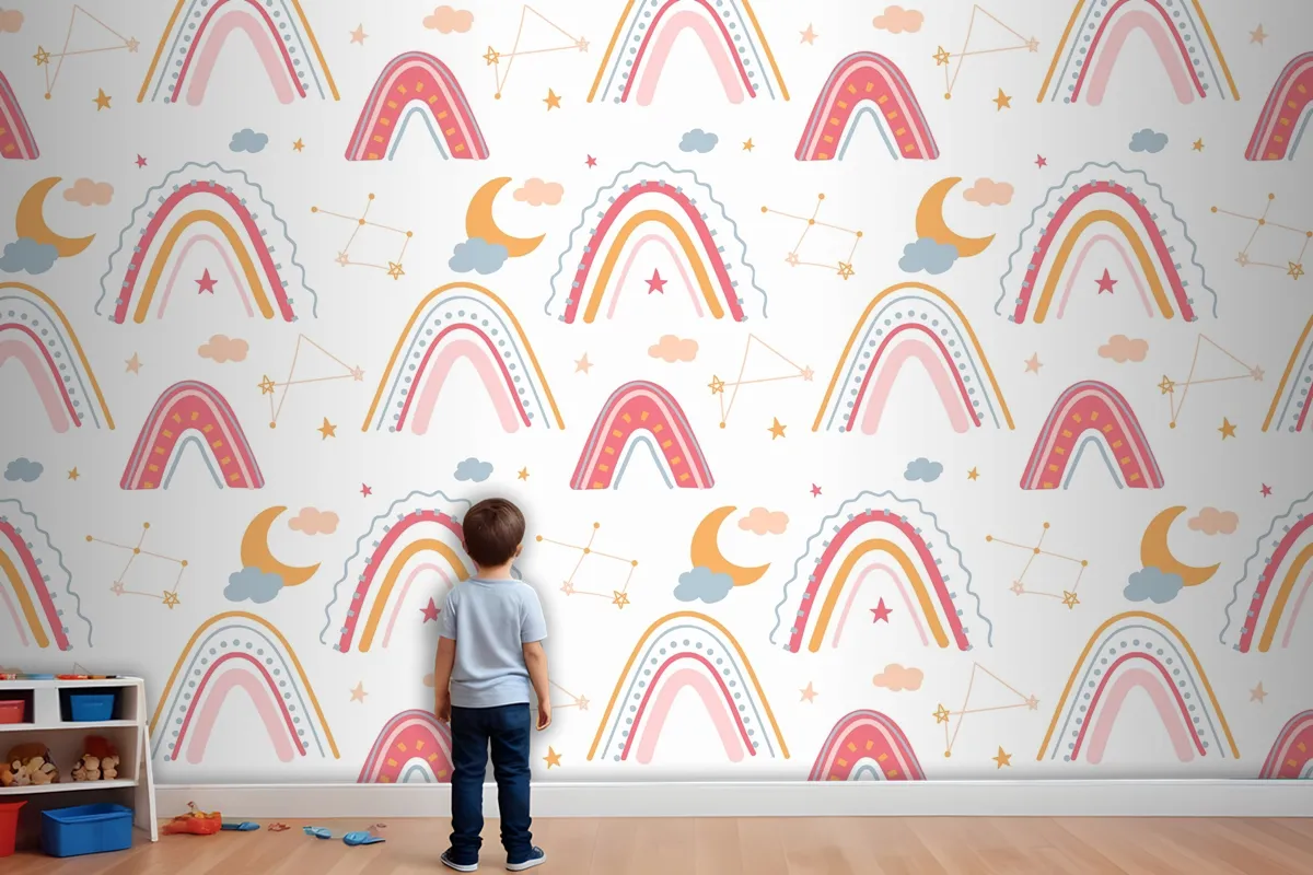 Elle Çizilmiş Gökkuşağı Desenli Çocuk Odası Duvar Kağıdı