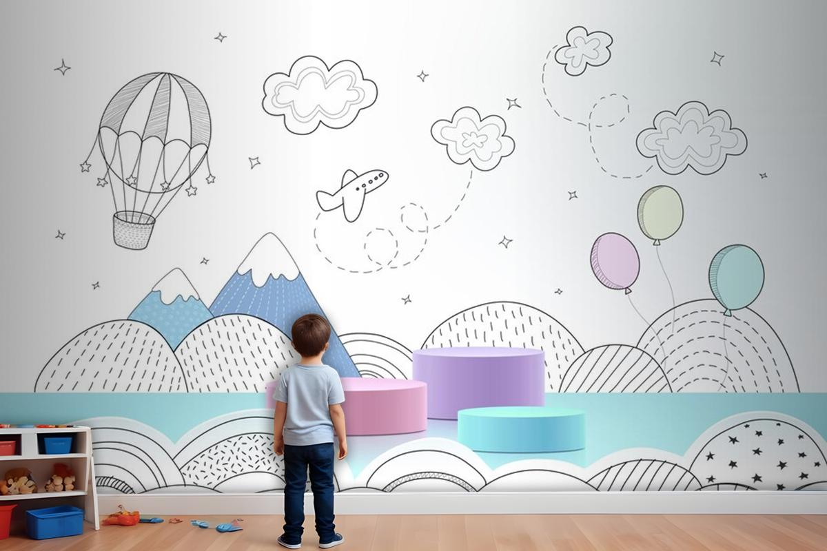 Elle Çizilmiş Hava Durumu Çocuk Odası Duvar Kağıdı Ile Podyum