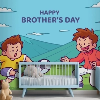 Elle Çizilmiş Kardeşler Günü Çocuk Odası Duvar Kağıdı