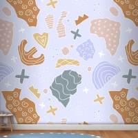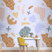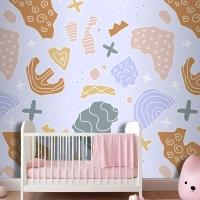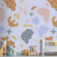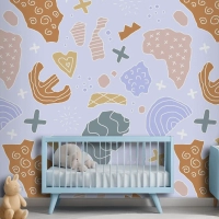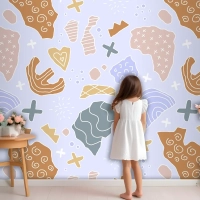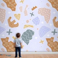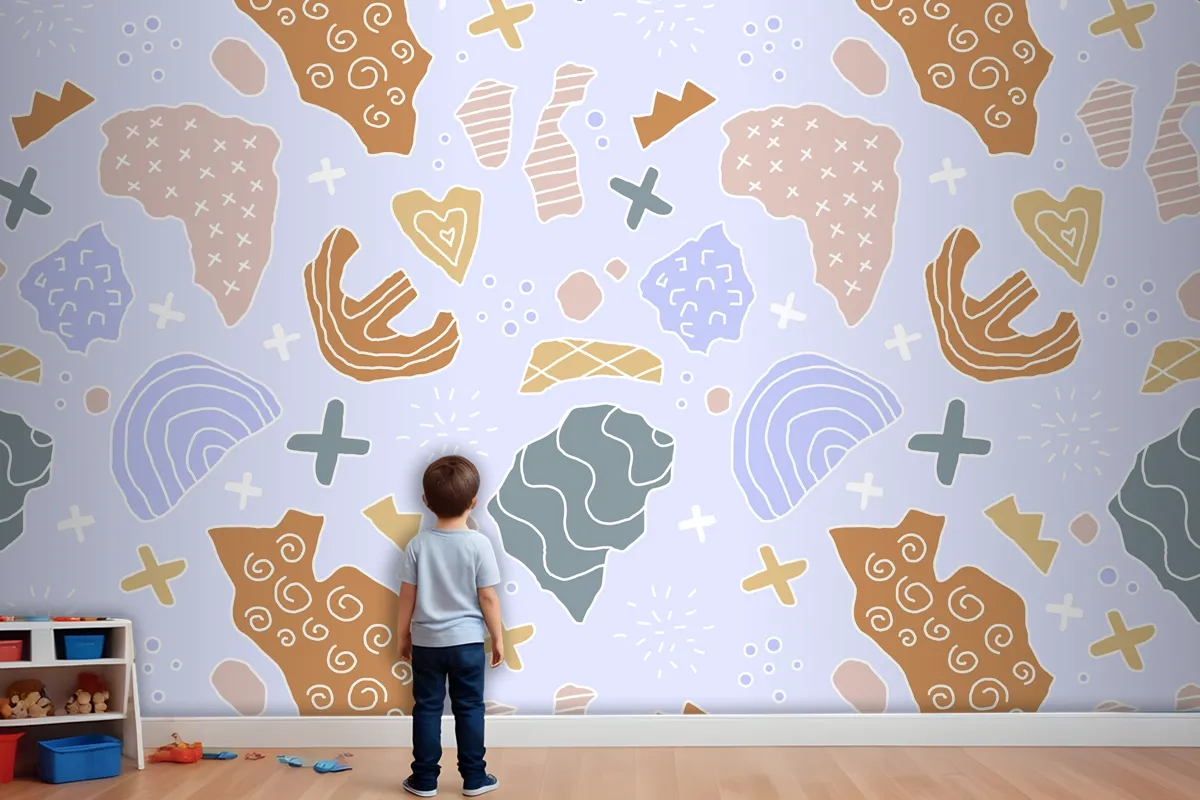 Elle Çizilmiş Kesme Kolaj Desen Çocuk Odası Duvar Kağıdı