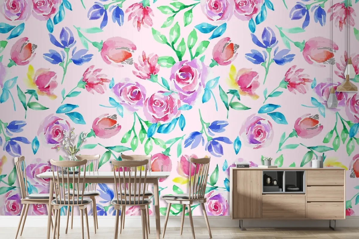 Elle Çizilmiş Küçük Çiçek Desenli Duvar Kağıdı