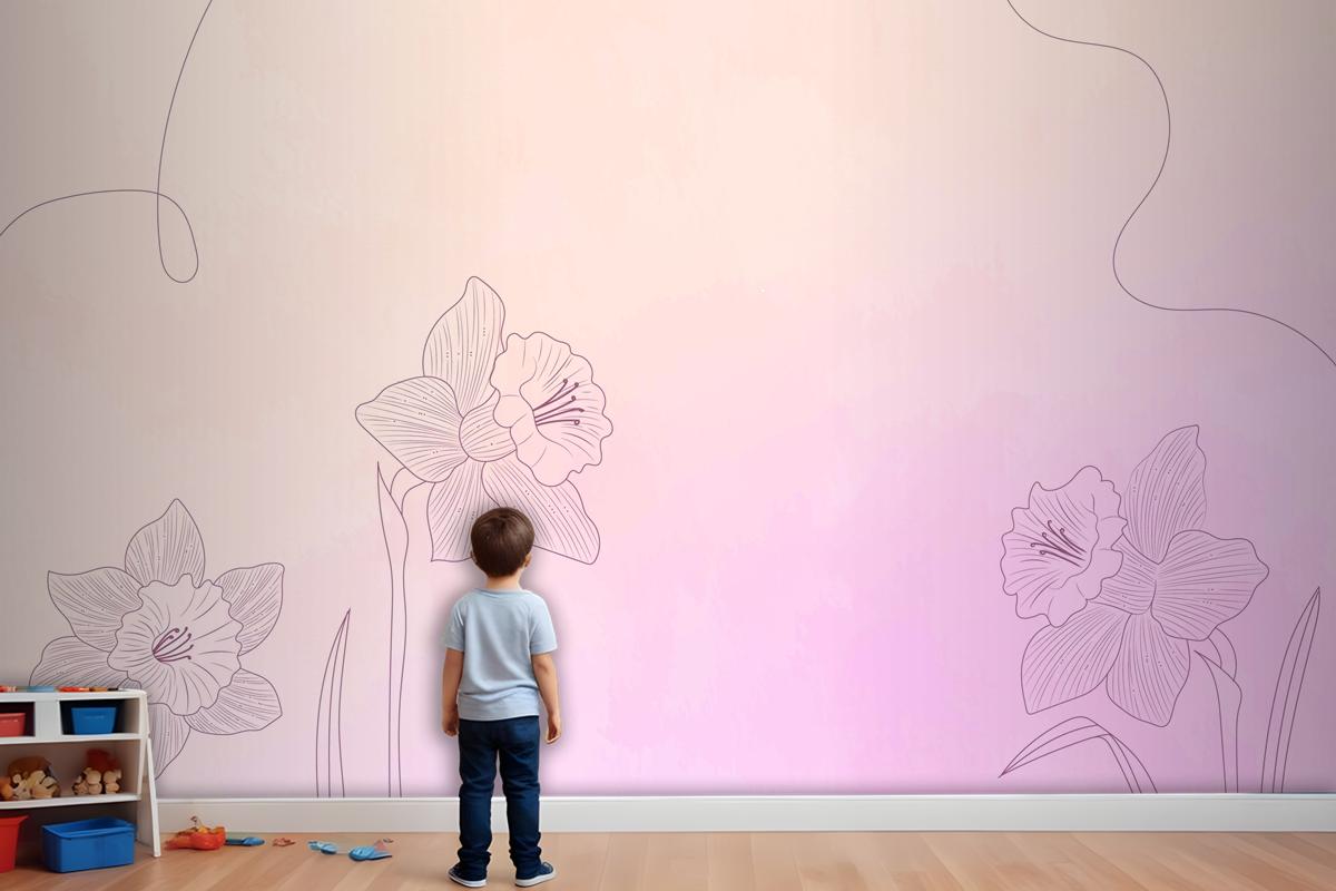 Elle Çizilmiş Öğelerle Suluboya Arka Plan Çocuk Odası Duvar Kağıdı