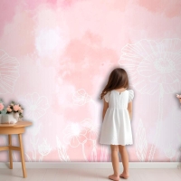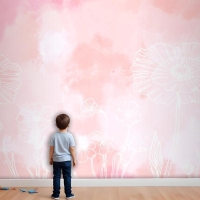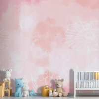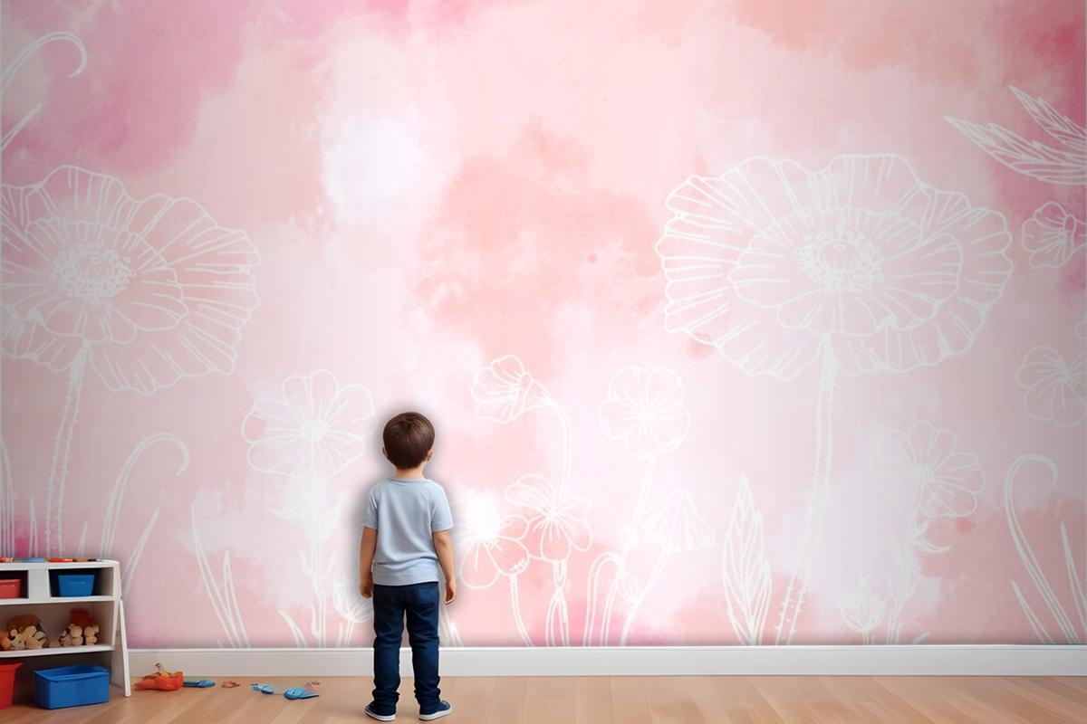Elle Çizilmiş Öğelerle Toz Pastel Çocuk Odası Duvar Kağıdı