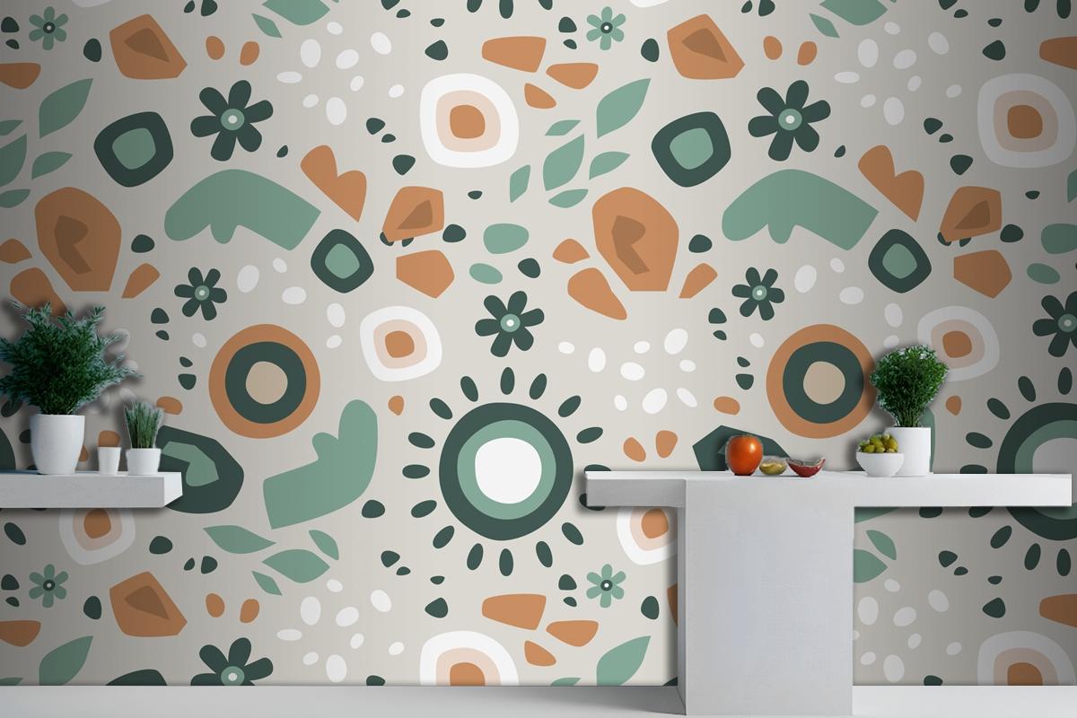 Elle Çizilmiş Sessiz Renkler Desen Tasarımı Mutfak Duvar Kağıdı