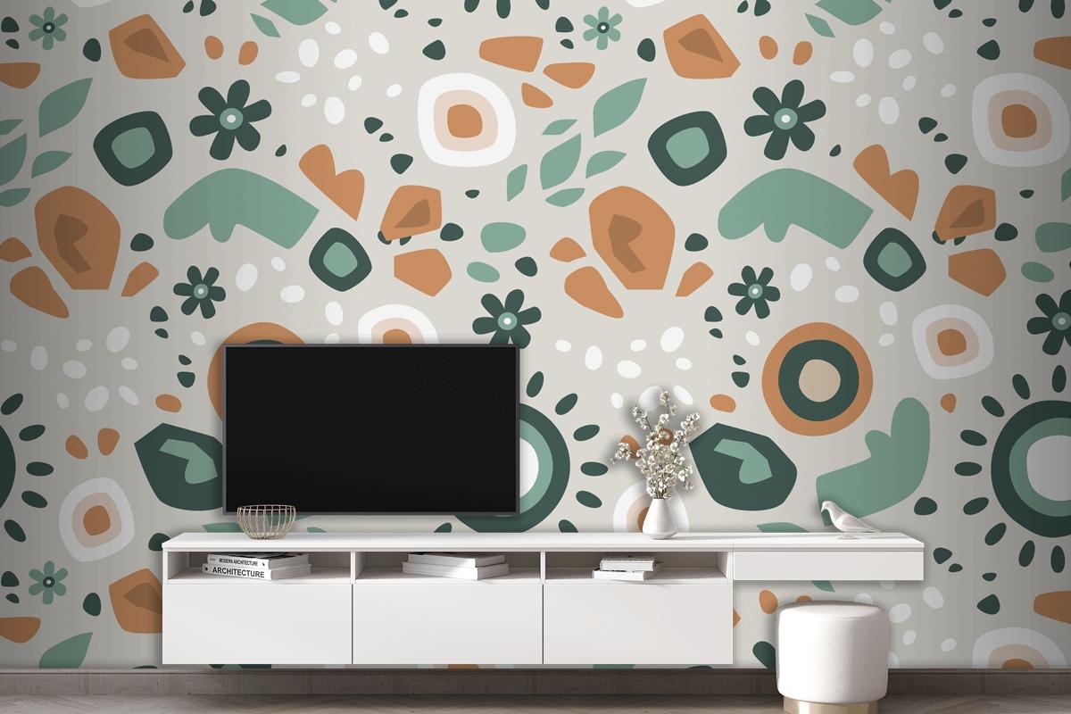 Elle Çizilmiş Sessiz Renkler Desen Tasarımı Oturma Odası Duvar Kağıdı