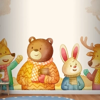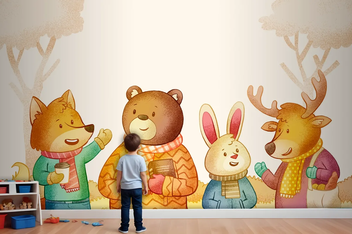 Elle Çizilmiş Sonbahar Sezonu Çocuk Odası Duvar Kağıdı