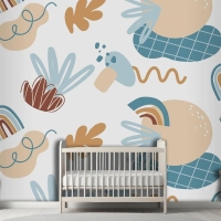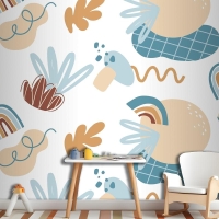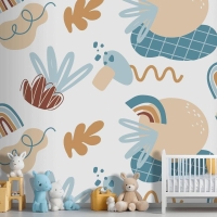 Elle Çizilmiş Soyut Öğe Desen Çocuk Odası Duvar Kağıdı