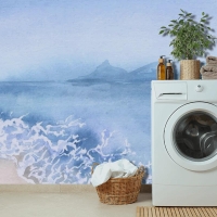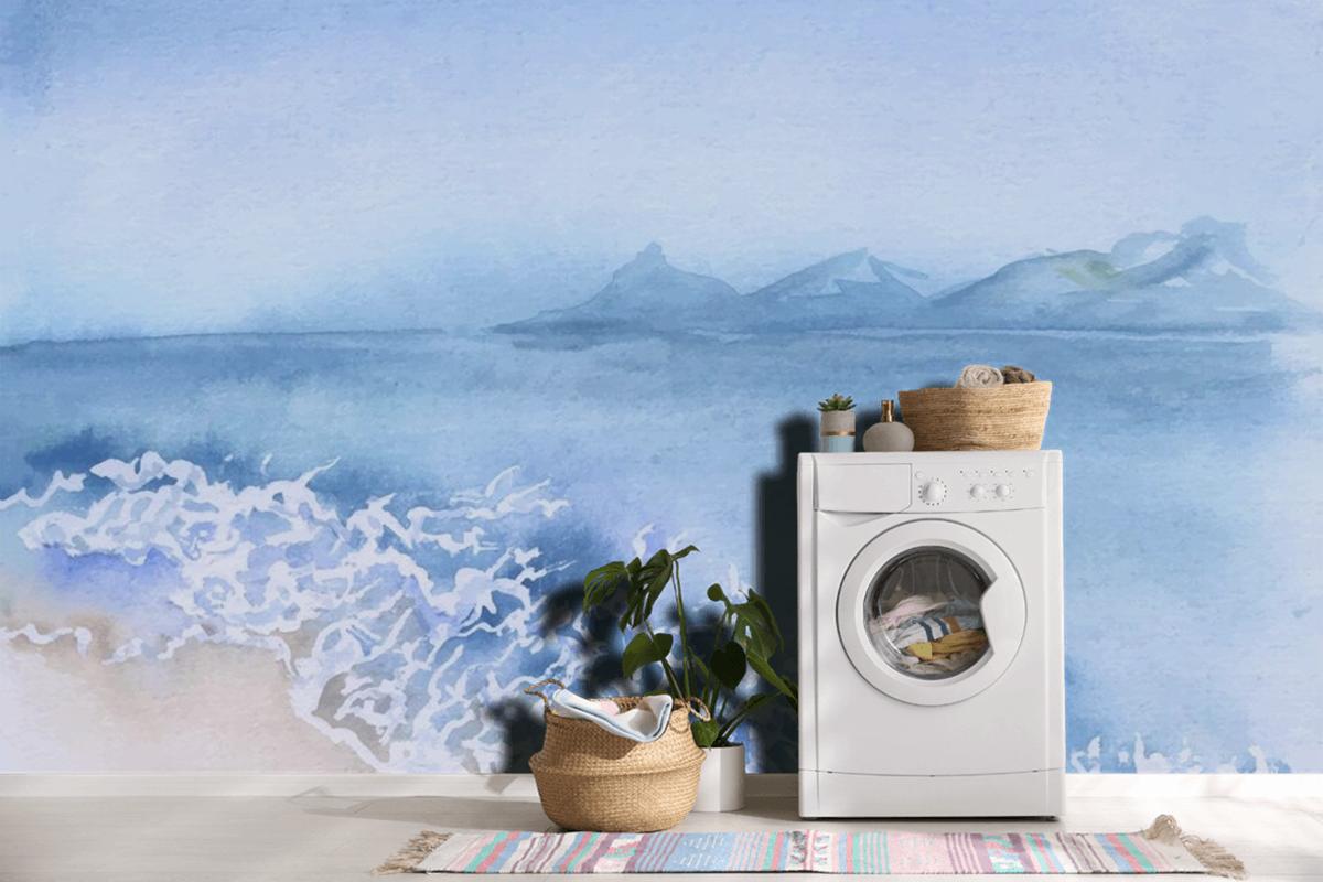 Elle Çizilmiş Suluboya Deniz Manzarası Su Ve Sahilde Sörf Duvar Kağıdı