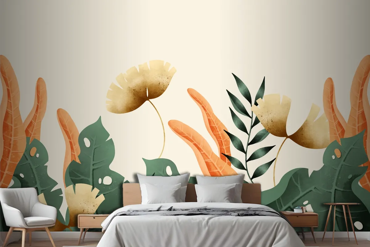 Elle Çizilmiş Vintage Bahçe Arka Plan Yatak Odası Duvar Kağıdı