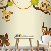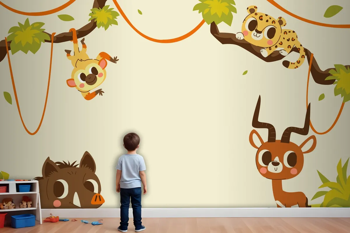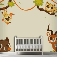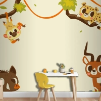 Elle Çizilmiş Yaban Hayatı Arka Plan Çocuk Odası Duvar Kağıdı