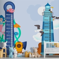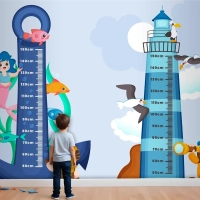 Elle Çizilmiş Yükseklik Ölçer Seti Çocuk Odası Duvar Kağıdı