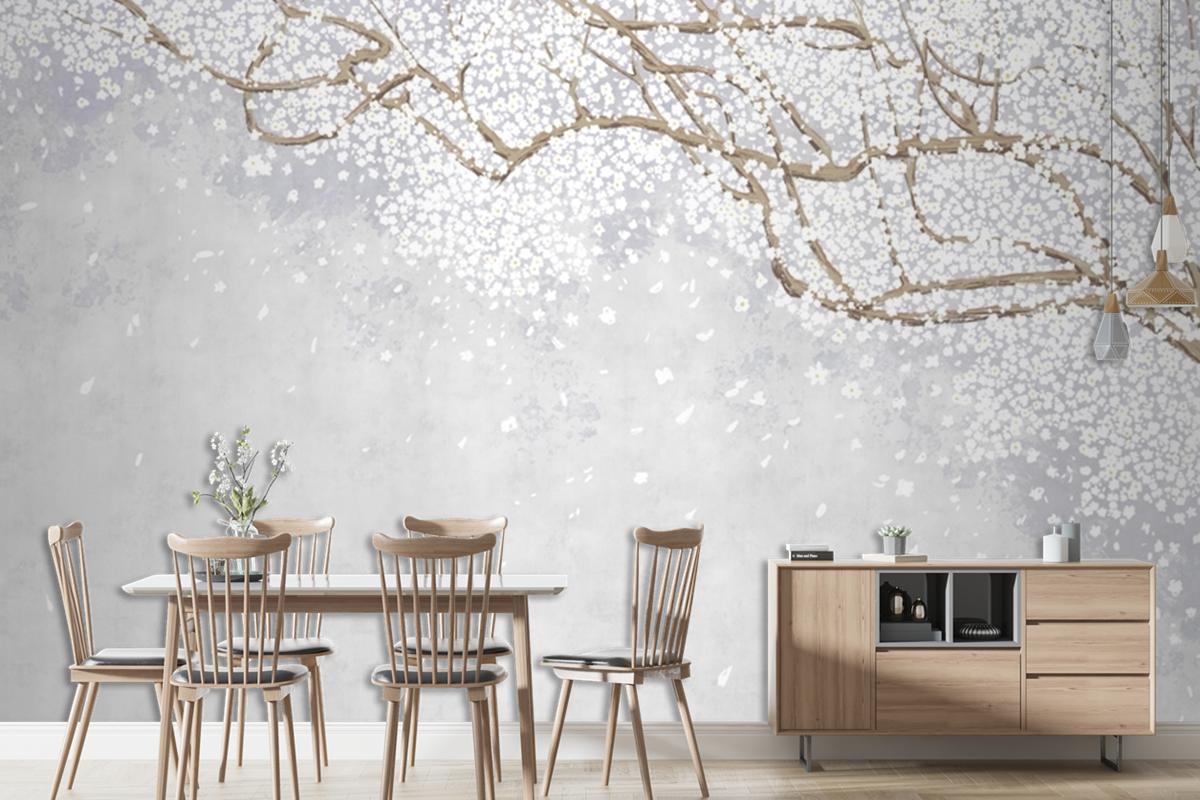 Eski Vintage Duvar Kağıdı Duvarında Ağaç Ve Dallar