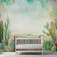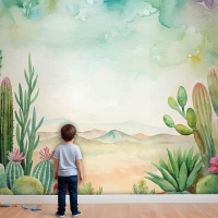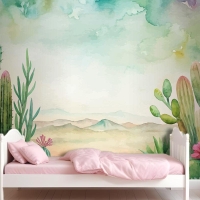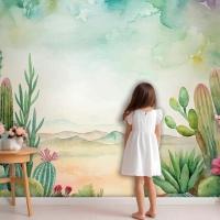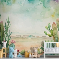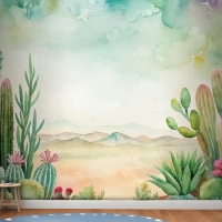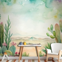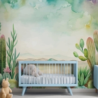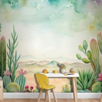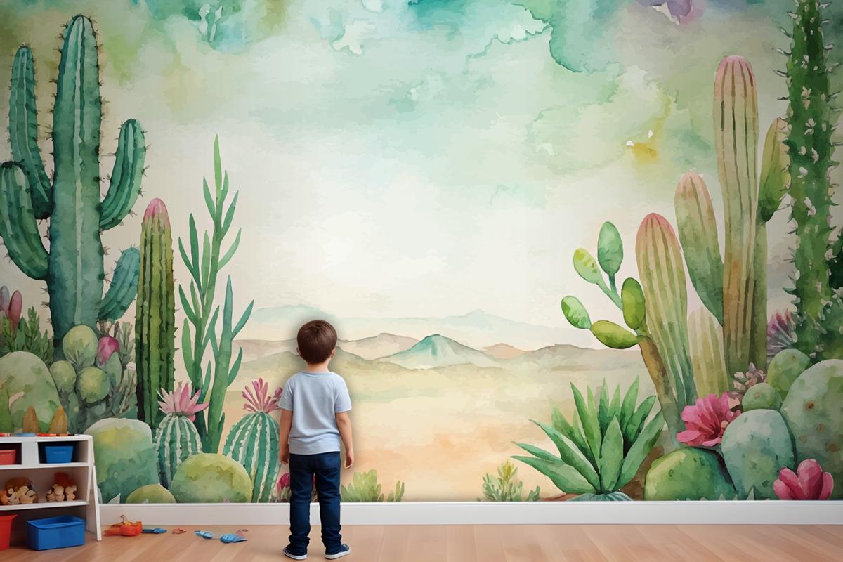 Etli Ve Kaktüs Suluboya Arka Plan Çocuk Odası Duvar Kağıdı
