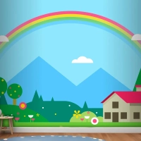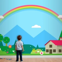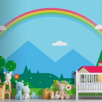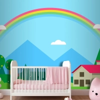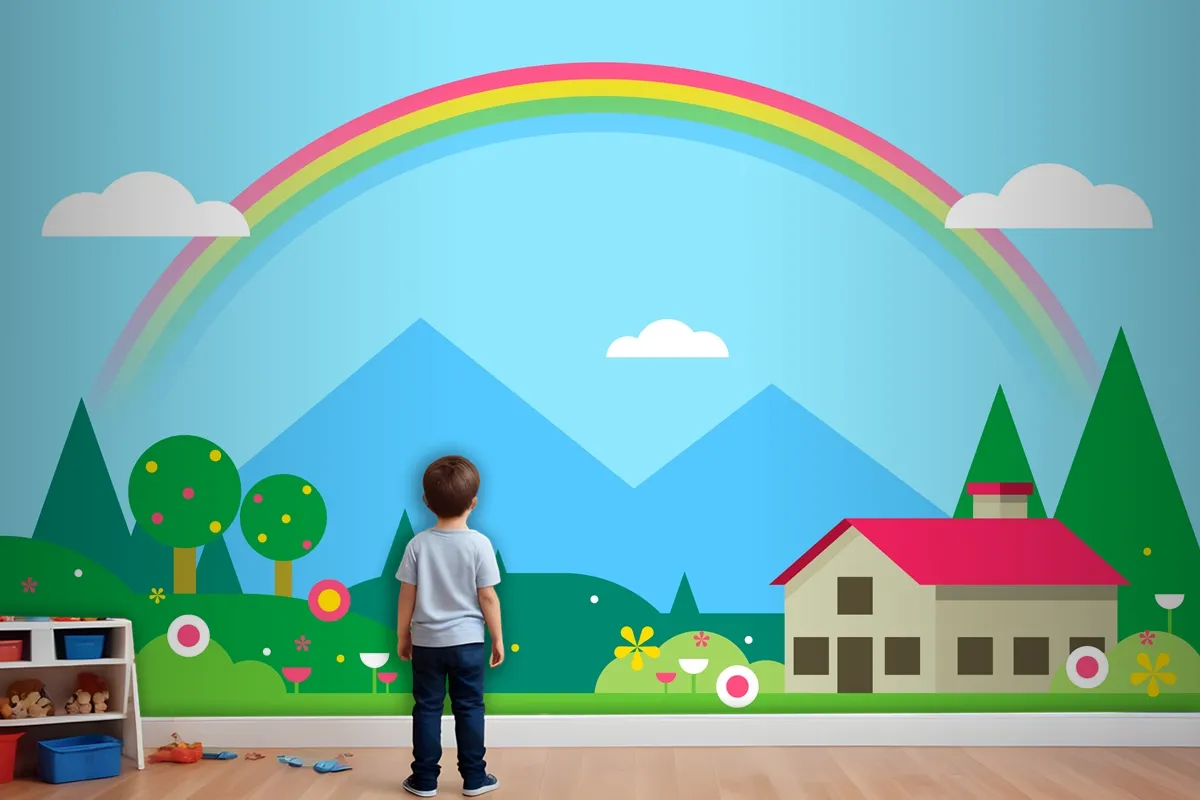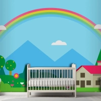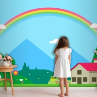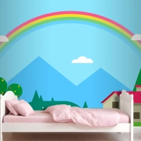 Ev Ve Gökkuşağı Çocuk Odası Duvar Kağıdı Ile Bahar Manzarası