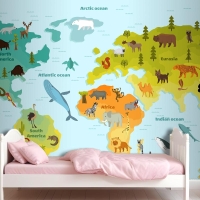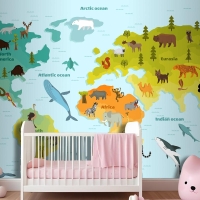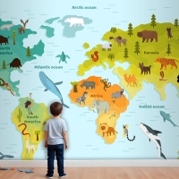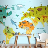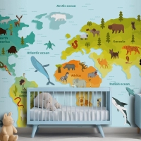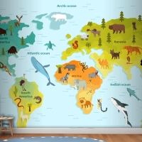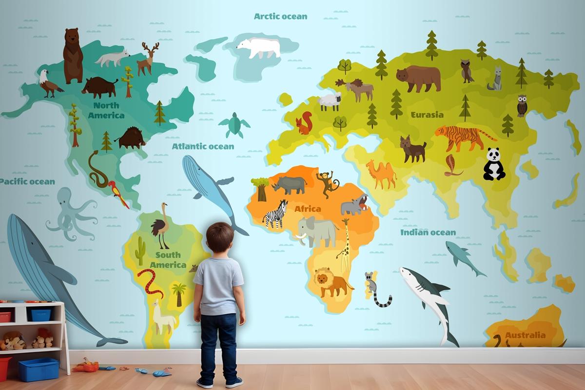 Farklı Hayvan Çocuk Odası Duvar Kağıdı Ile Dünya Haritası