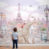 Fil Ve Tavşanlar Çocuk Odası Duvar Kağıdı