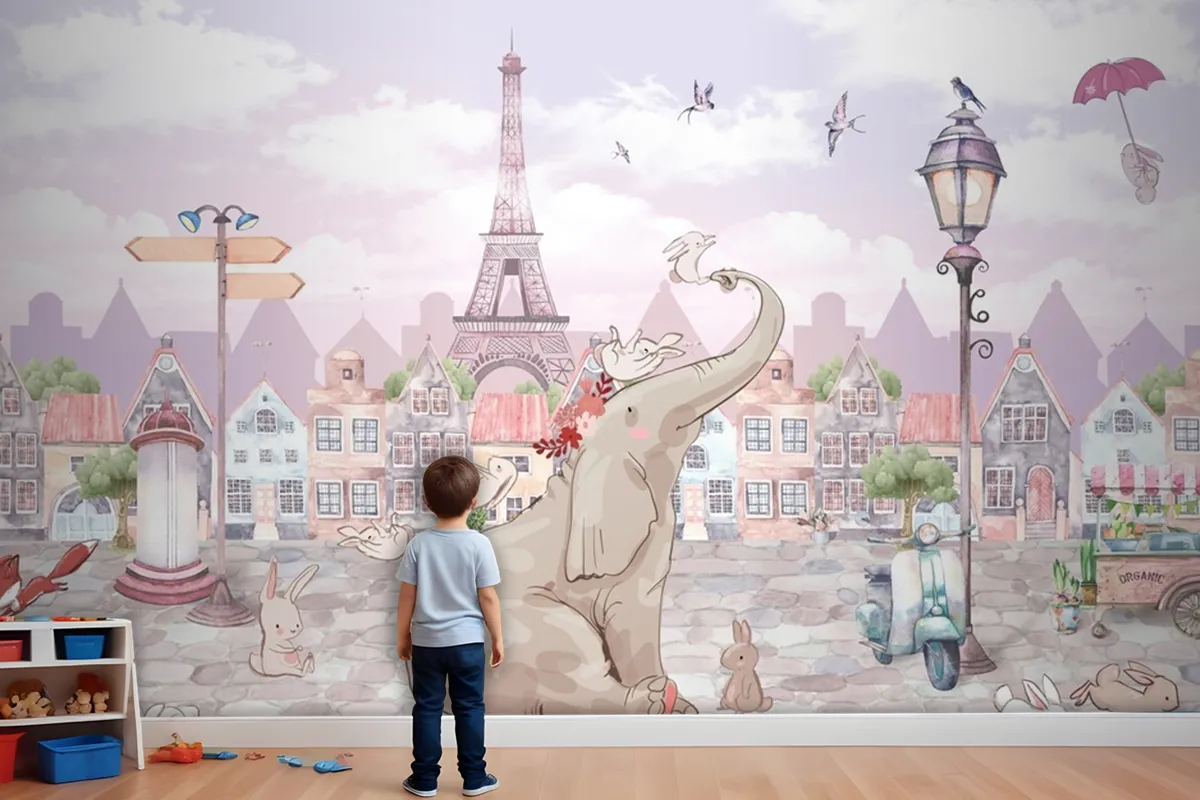 Fil Ve Tavşanlar Çocuk Odası Duvar Kağıdı
