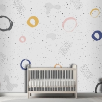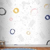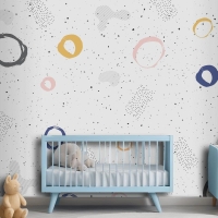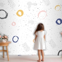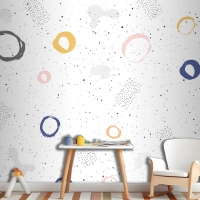 Fırça Dairesel Kontur Suluboya Çocuk Odası Duvar Kağıdı