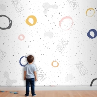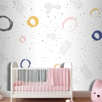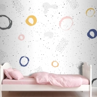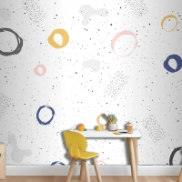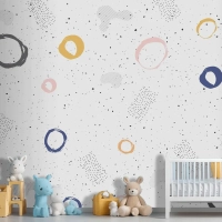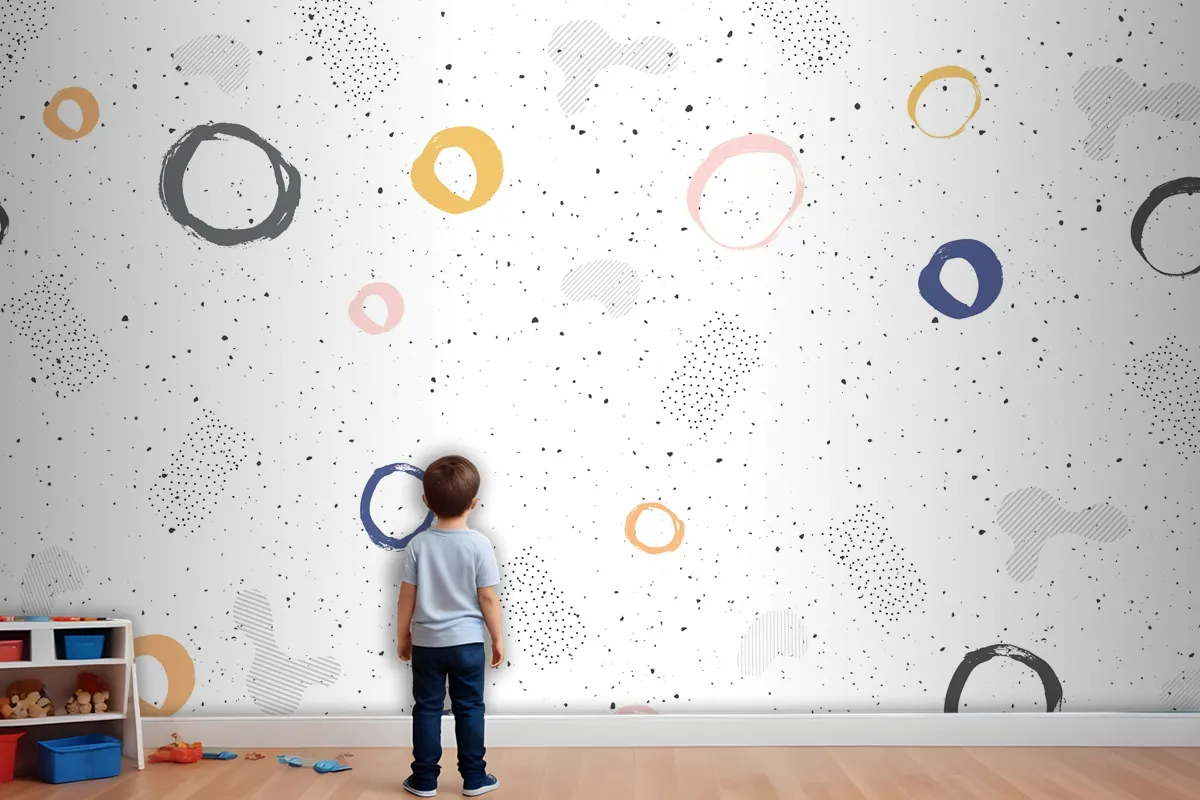 Fırça Dairesel Kontur Suluboya Çocuk Odası Duvar Kağıdı