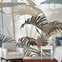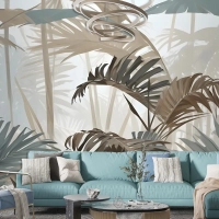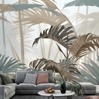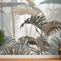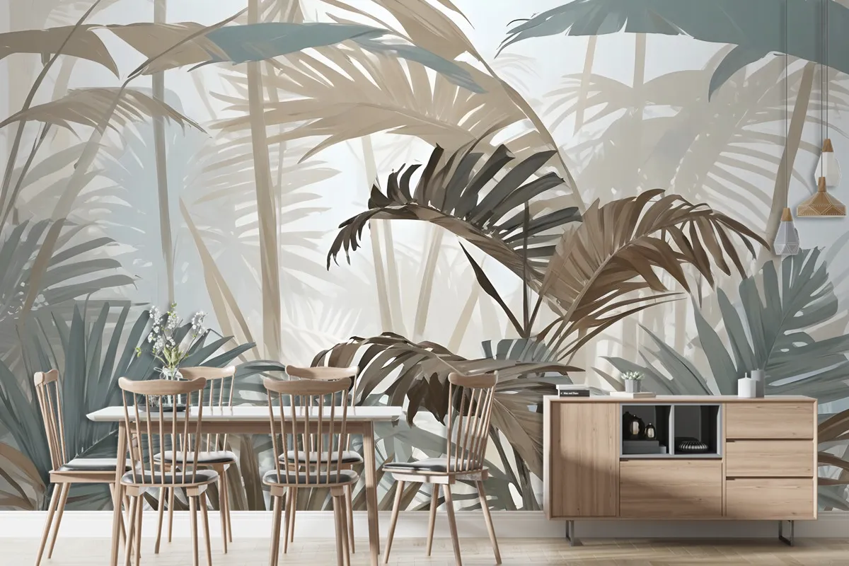 Fırça Darbeleriyle Tropikal Yaprak Boyama Duvar Kağıdı