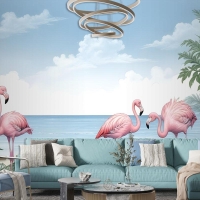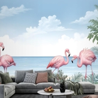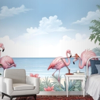 Flamingolu Tropikal Manzara Duvar Kağıdı