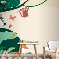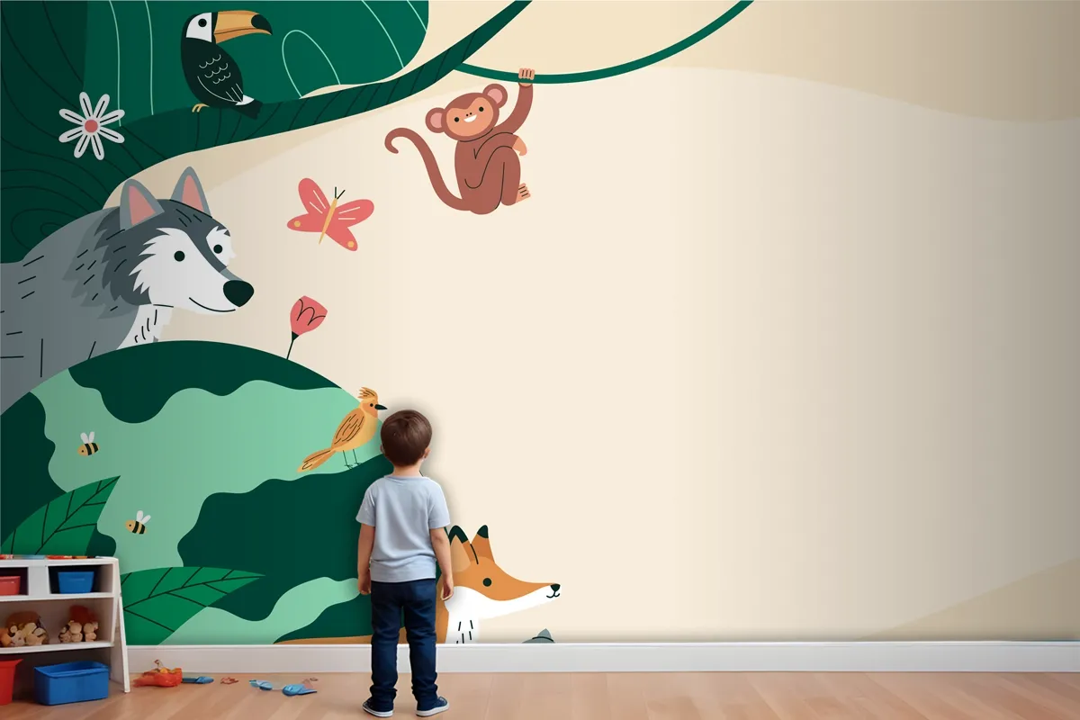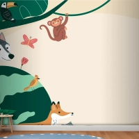 Flora Ve Fauna Çocuk Odası Duvar Kağıdı Ile Dünya Yaban Hayatı Günü İçin Düz Arka Plan