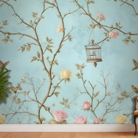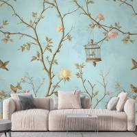 Fotoğraf Duvar Kağıdı İçin Küçük Çiçekler Ve Kuşlar