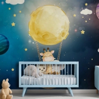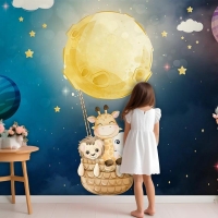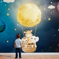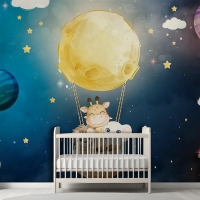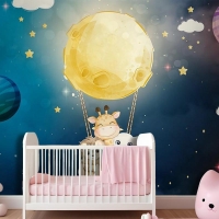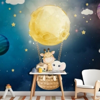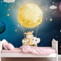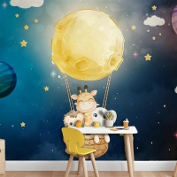 Galaksi Gezegenler Ve Sevimli Hayvanlar Çocuk Odası Duvar Kağıdı