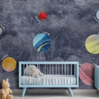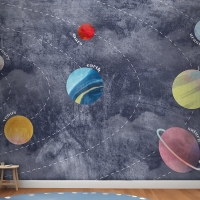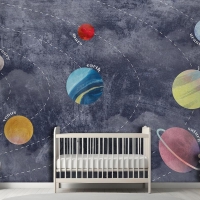 Galaksi Gezegenler Ve Uzay Çocuk Odası Duvar Kağıdı