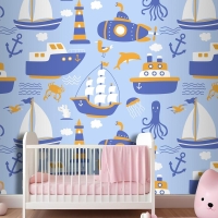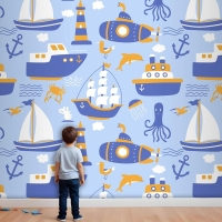 Gemiler Ile Seamless Modeli Çocuk Odası Duvar Kağıdı