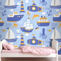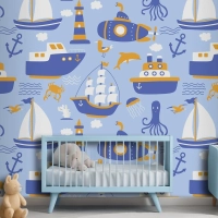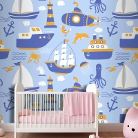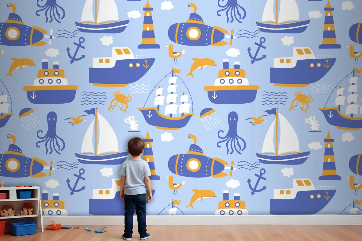Gemiler Ile Seamless Modeli Çocuk Odası Duvar Kağıdı