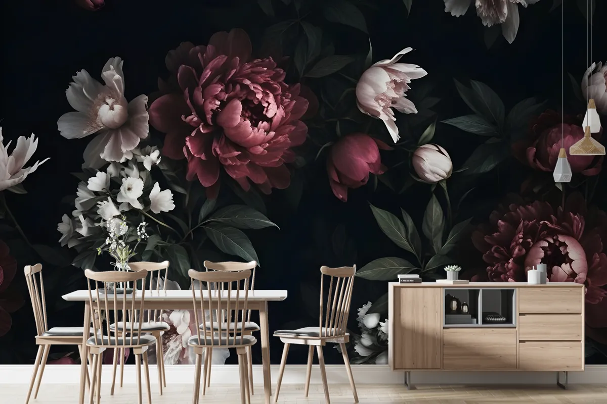 Gerçekçi Koyu Şakayık Çiçek Buketi Duvar Kağıdı