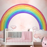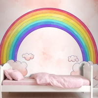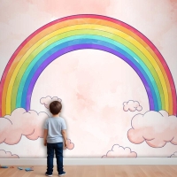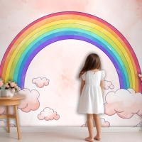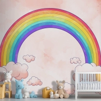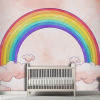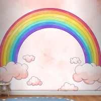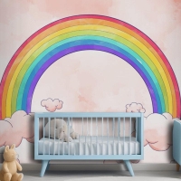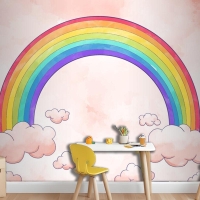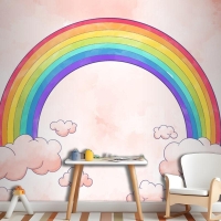 Gökkuşağı Bulutlu Suluboya Tarzı Çocuk Odası Duvar Kağıdı