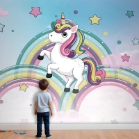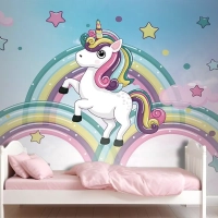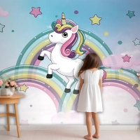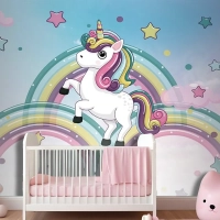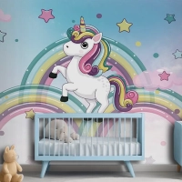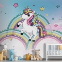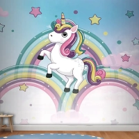 Gökkuşakları Üzerinde Unicorn Çocuk Odası Duvar Kağıdı