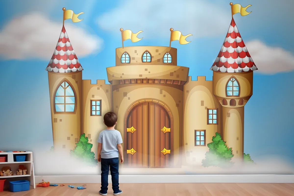 Gökyüzünde Bir Masal Kalesi Çocuk Odası Duvar Kağıdı Duvar Resimleri