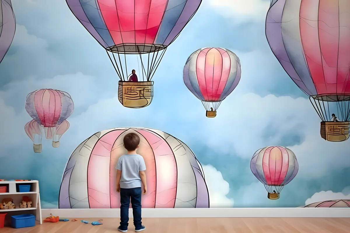 Gökyüzünde Renkli Sıcak Hava Balonları Ile Kusursuz Desen Çocuk Odası Duvar Kağıdı