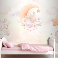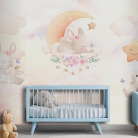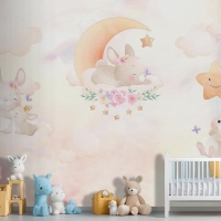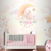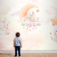 Gökyüzünde Sevimli Tavşanların Dünyası Çocuk Odası Duvar Kağıdı