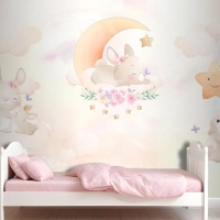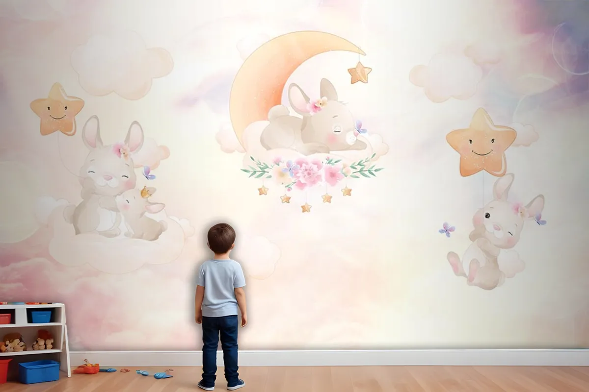 Gökyüzünde Sevimli Tavşanların Dünyası Çocuk Odası Duvar Kağıdı