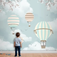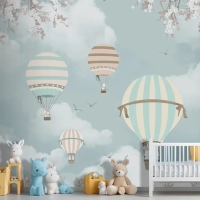 Gökyüzündeki Balonlar Ve Uçaklar Çocuk Odası Duvar Kağıdı