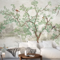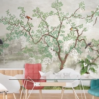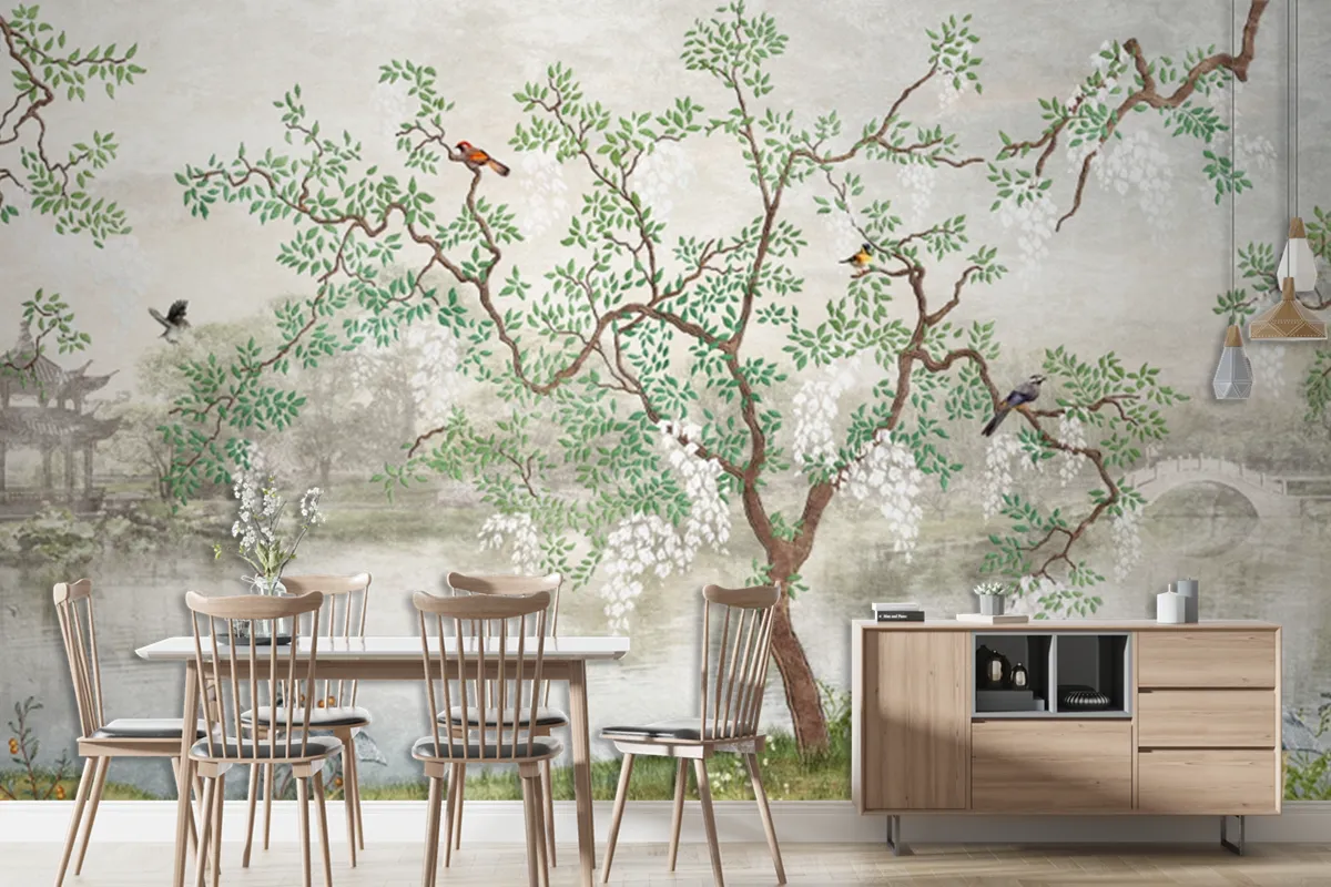 Göl Kenarındaki Ağaç Puslu Manzara Japon Bahçesi'ndeki Kuşlar Duvar Kağıdı
