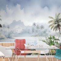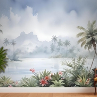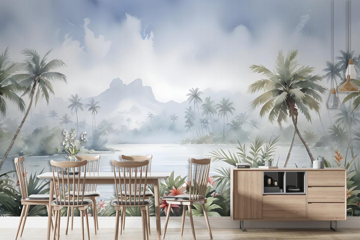 Göl Manzarası Duvar Kağıdı İle Vintage Orman