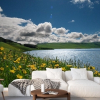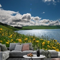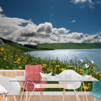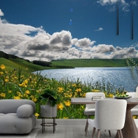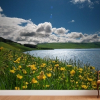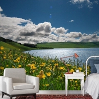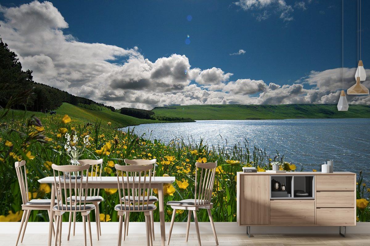 Göldeki Çiçekler Manzara Duvar Kağıdı