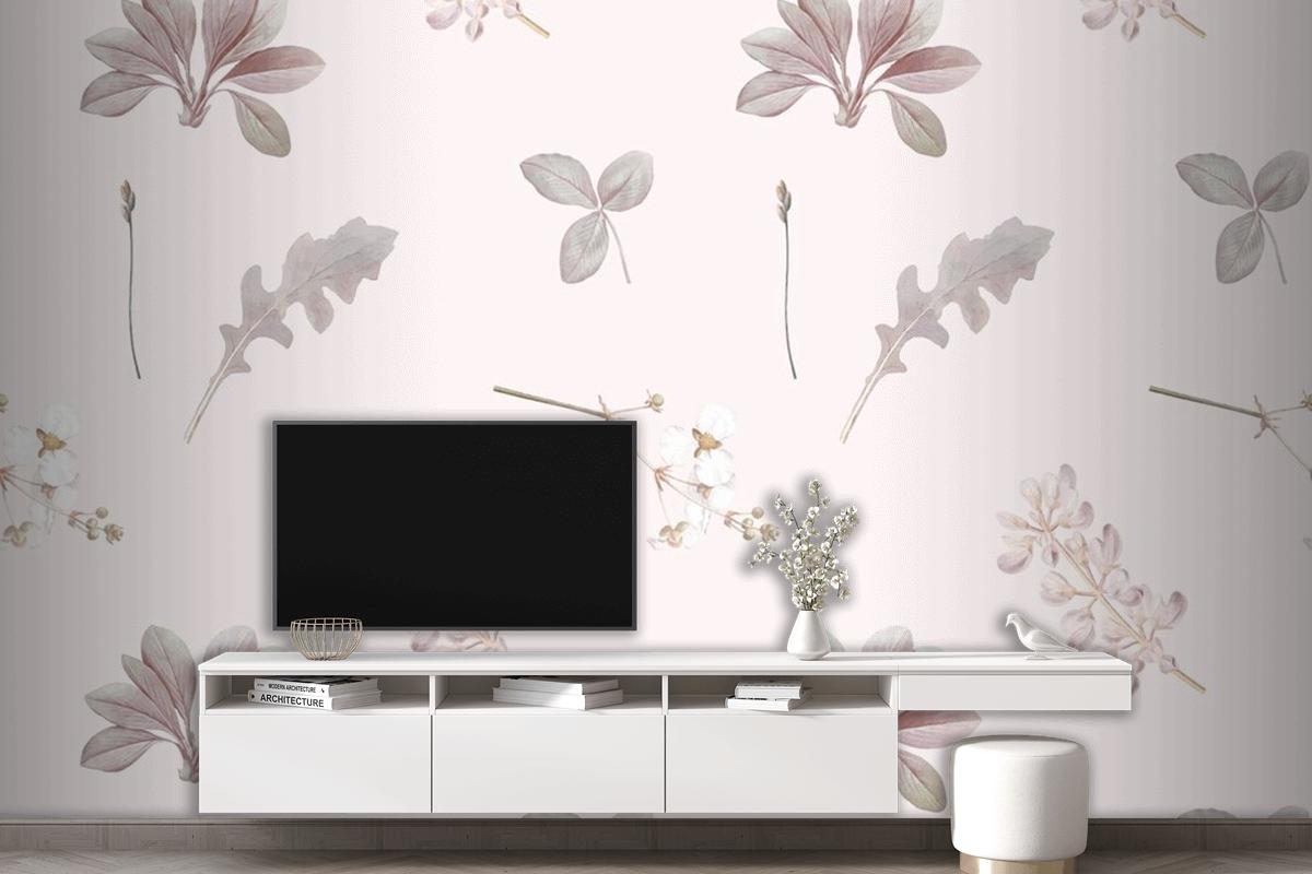 Gri Arka Planda Çiçek Desenli Dikişsiz Desen Tv Arkası Duvar Kağıdı