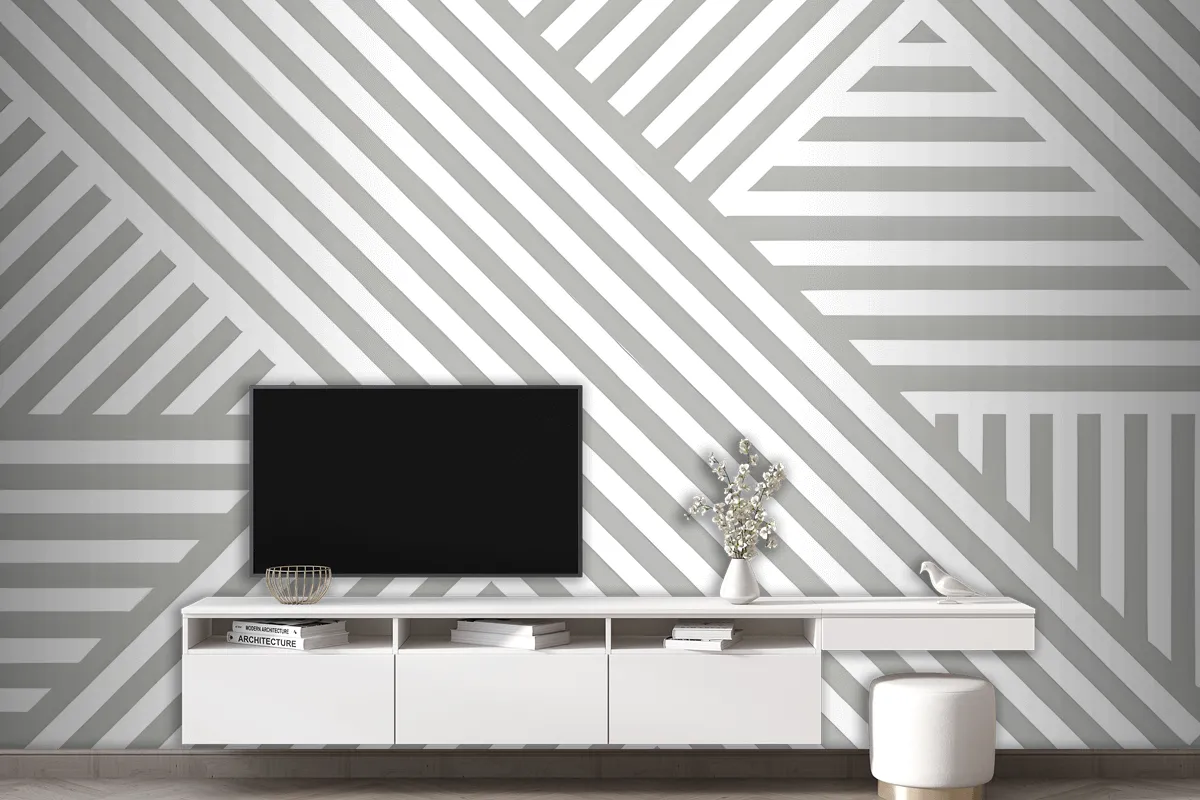 Gri Beyaz Çapraz Çizgili Desenli Oturma Odası Salon Duvar Kağıdı