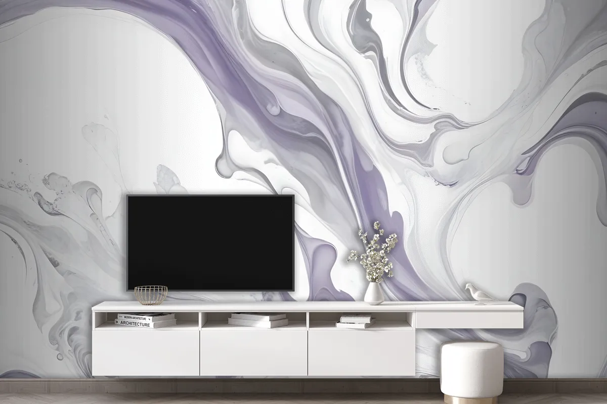 Gri Beyaz Organik Şekiller Ve Dokuların Tonlarında Dönen Soyut Desenler Oturma Odası Salon Duvar Kağıdı