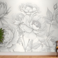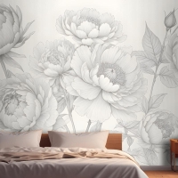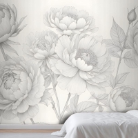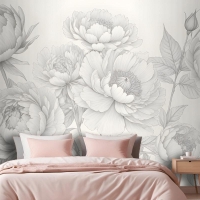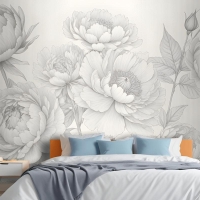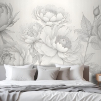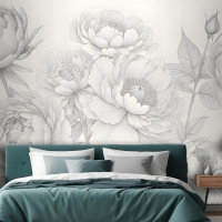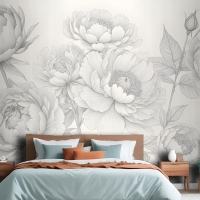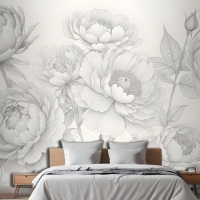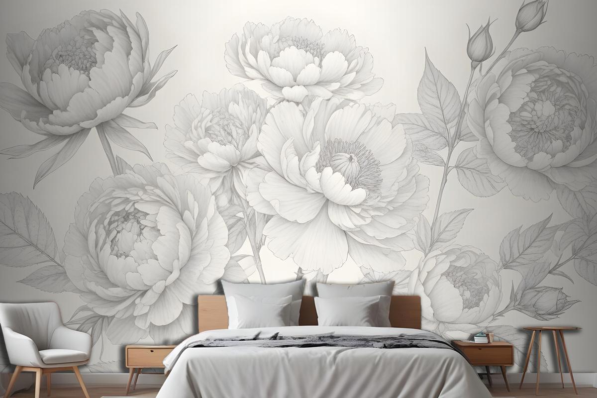Gri Büyük Resimli Güller Yatak Odası Duvar Kağıdı