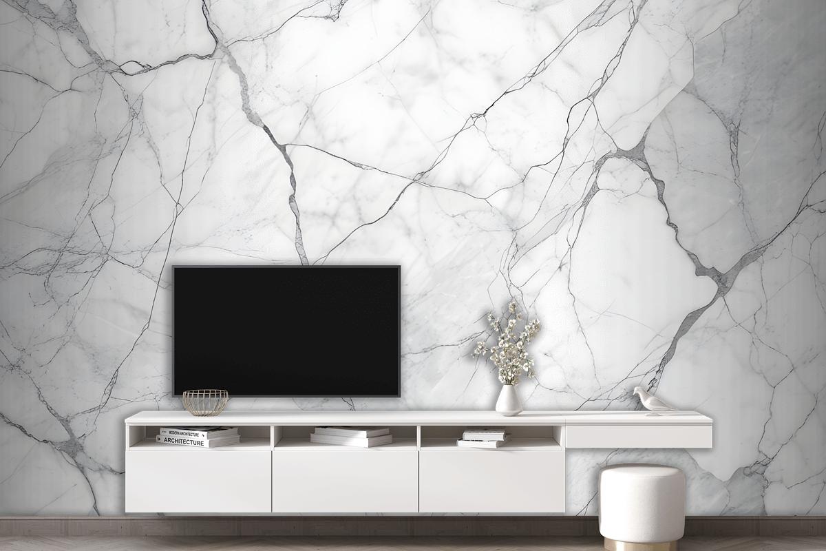 Gri Damarlı Beyaz Mermer Doku Oturma Odası Salon Duvar Kağıdı